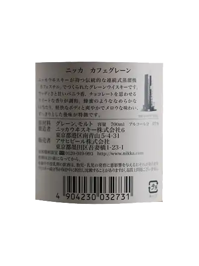 Nikka operates two Coffey stills (named after its inventor, Aeneas Coffey) within the Miyagikyo distillery, for the elaboration of its grain whiskies. Imported from Scotland in 1963, these old stills yield a distillate with more flavour and depth than modern column stills, imparting a distinct character that defines the house blends. For those who like grain whisky, this is excellent stuff!